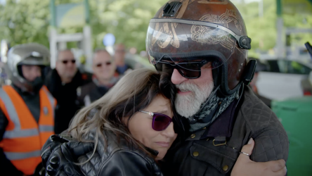 Dave Myers’ widow Lili embraces Si King at the end of commemorative convoy